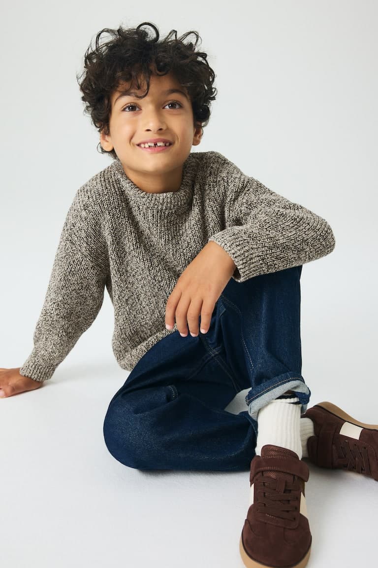 Джемпер из хлопка в рубчик с круглым вырезом горловины, отделанным рубчиком, и резинкой на манжетах и подоле.Состав