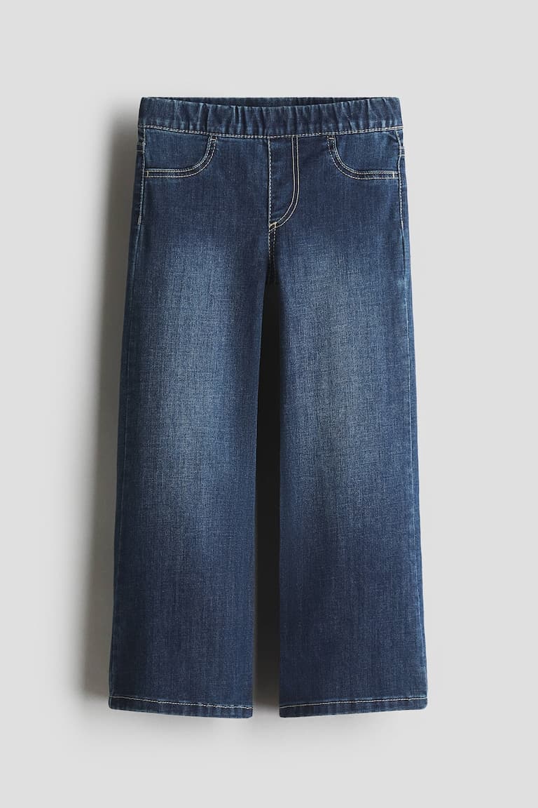 Джинсы из стираного денима. Свободный крой, эластичная талия на резинке, имитация ширинки, имитация передних карманов, настоящие задние карманы и широкие штанины.Состав
