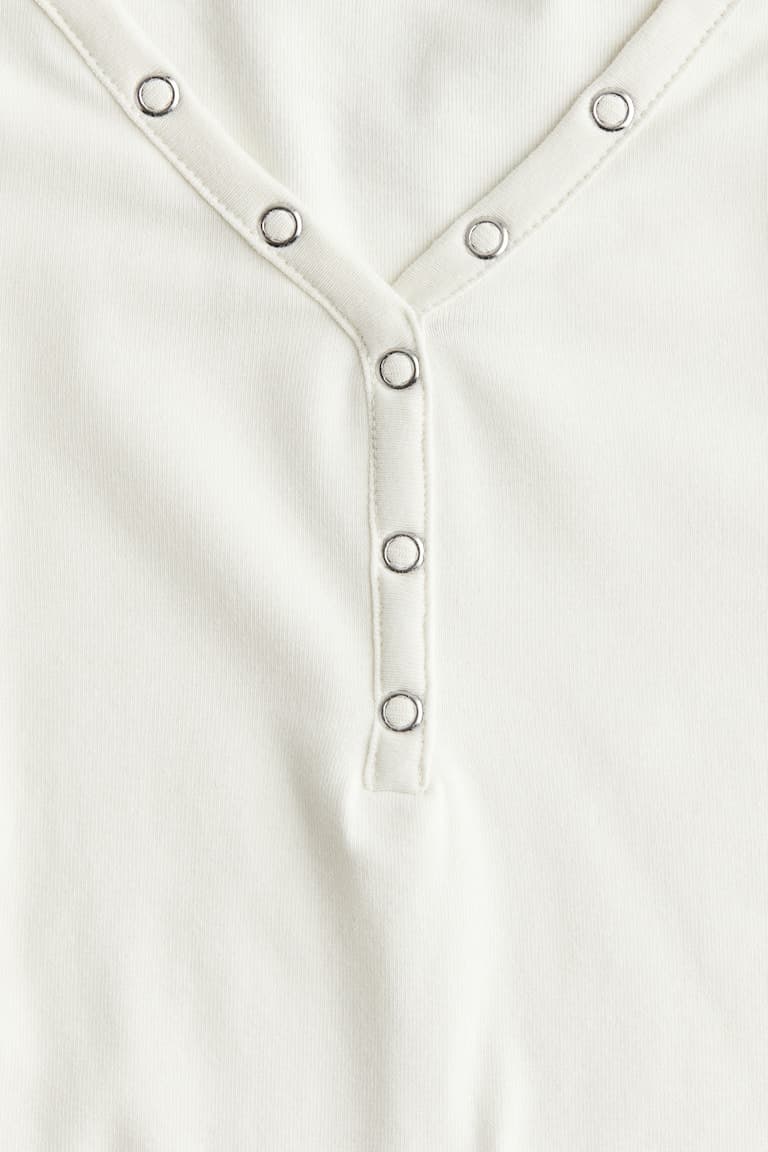 Топ с длинными рукавами из мягкого хлопкового трикотажа с V-образным вырезом и декоративными кнопками спереди. Закругленный низ.Состав