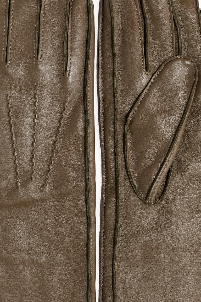 Длинные перчатки из мягкой кожи с открытыми швами. На подкладке.Состав